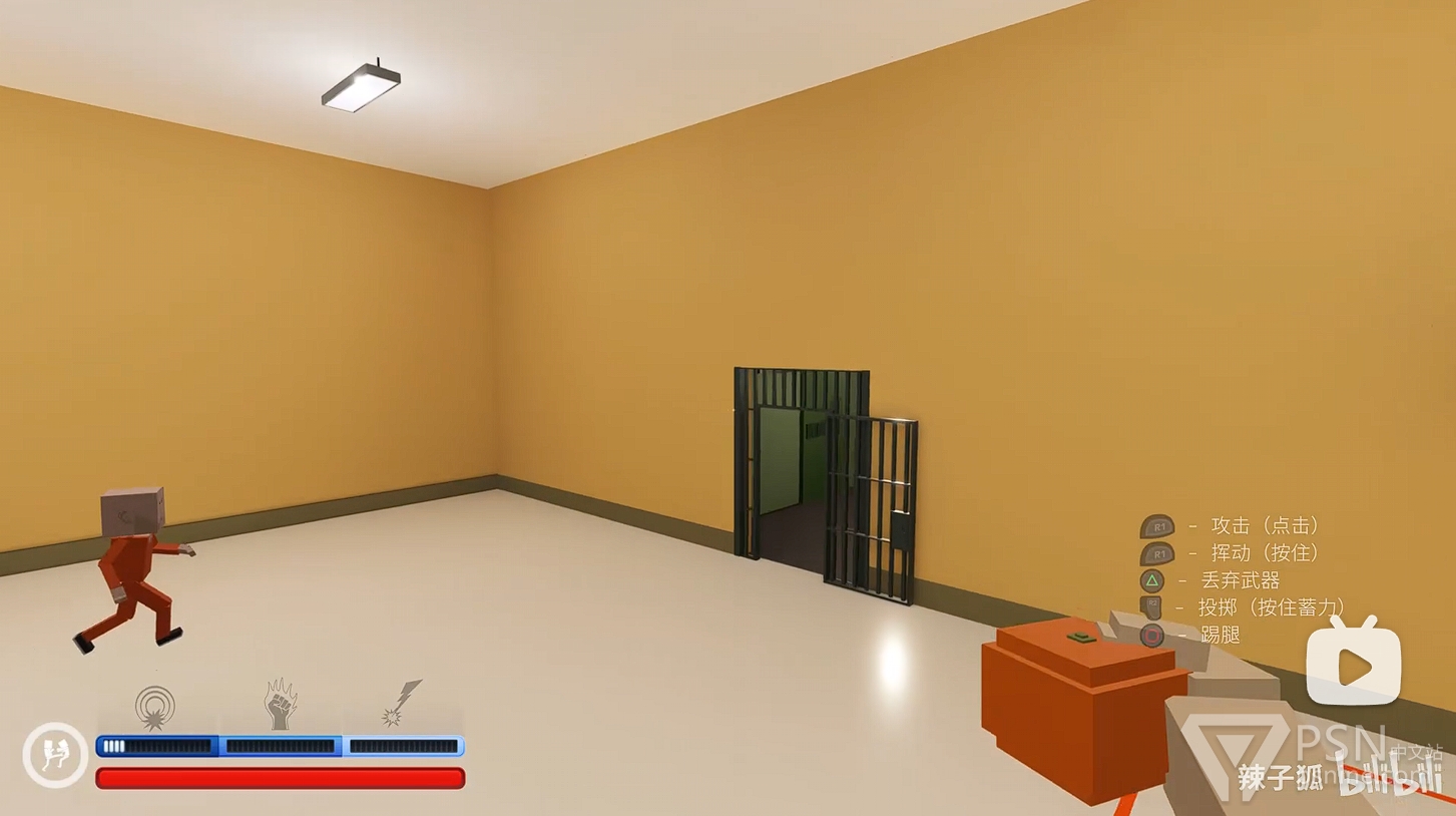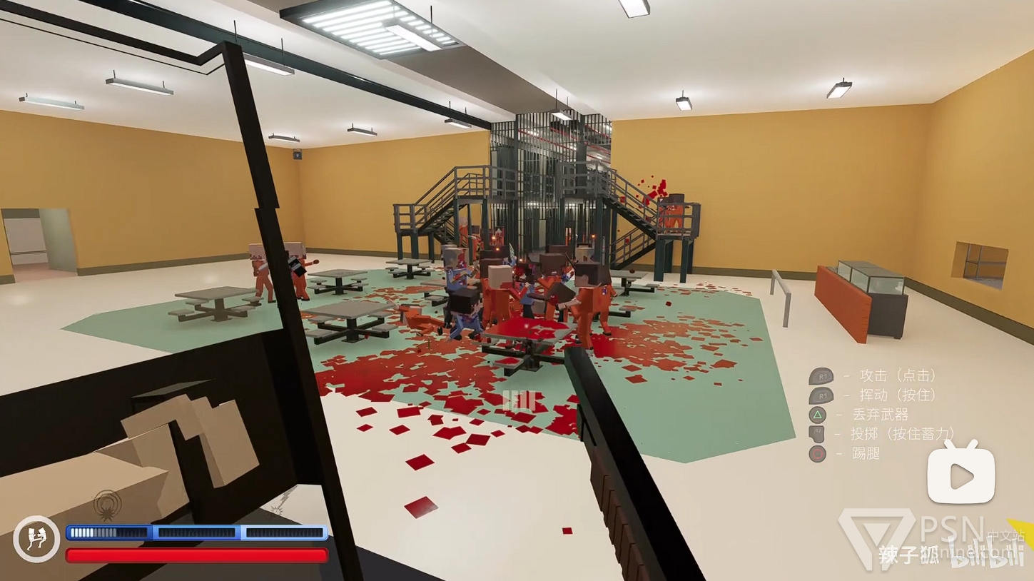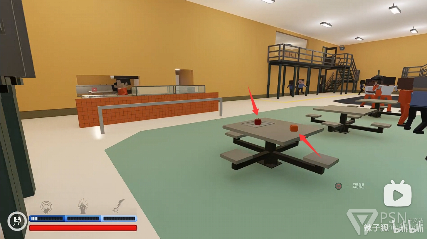 ·随后出门前往中央区右手边的监狱二楼,往警卫身上丢电击棒,吸引仇恨;