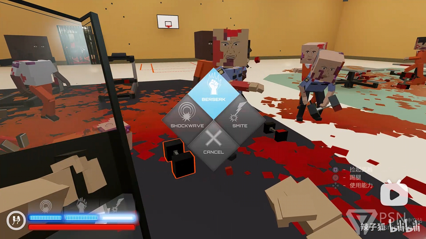 ·用完技能后,捡起地上敌人留下的武器,警棍、哑铃棒或者平底锅等等,清理剩余敌人的同时继续攒第二个狂暴技能;