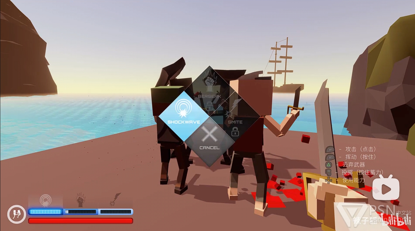 ·靠近沙滩海边的地方有一群人,可以使用震荡波技能把他们一波带走;