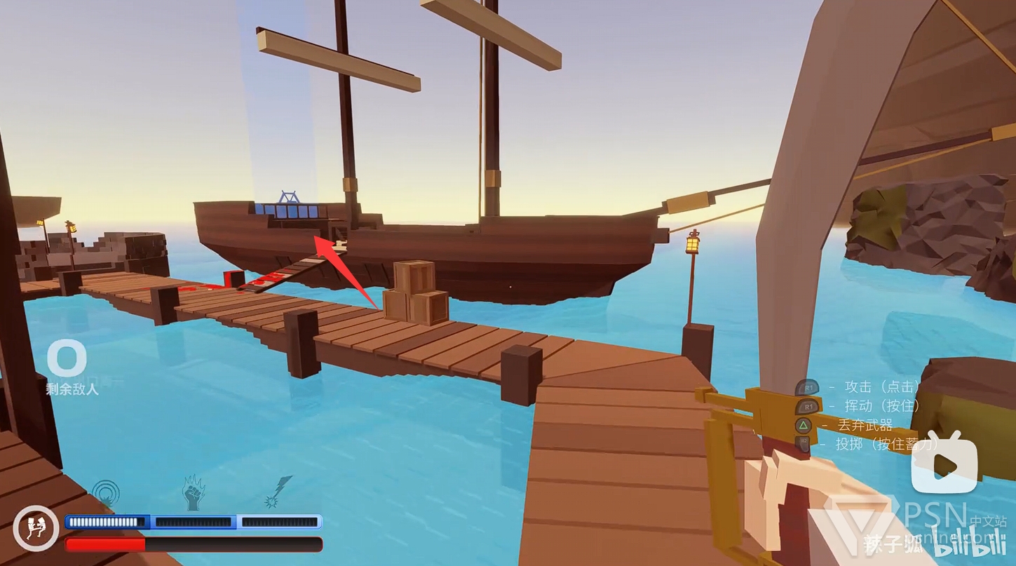 ·清理完敌人后,前往海盗船的蓝光柱处,即可完成本关卡;