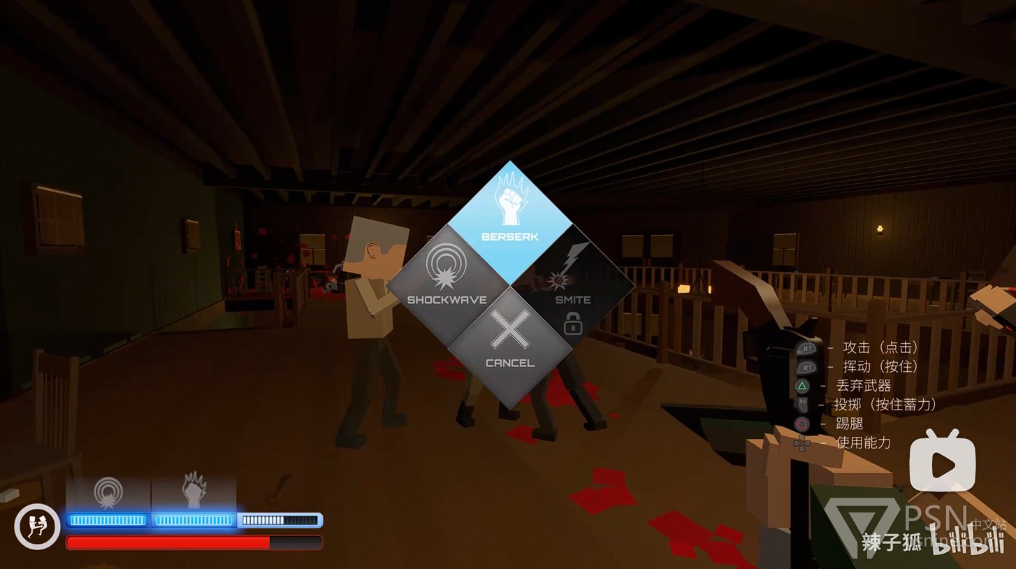·在你有了第一个技能条后前往这个房间的床上释放冲击波,吸引楼下厨师的仇恨,随后在房间床上拿水果刀攻击被你仇恨吸引来的吧主,以此拿到第二把砍刀;