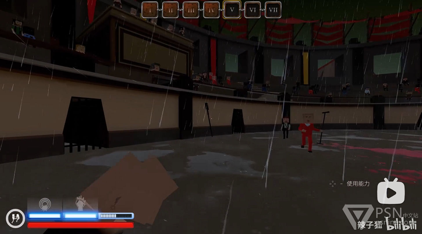·第四关:开局会遇到5个拳击手,场中央围着尖刺陷阱,陷阱内部有警棍和防爆盾可供使用,利用这些武器击败拳击手;