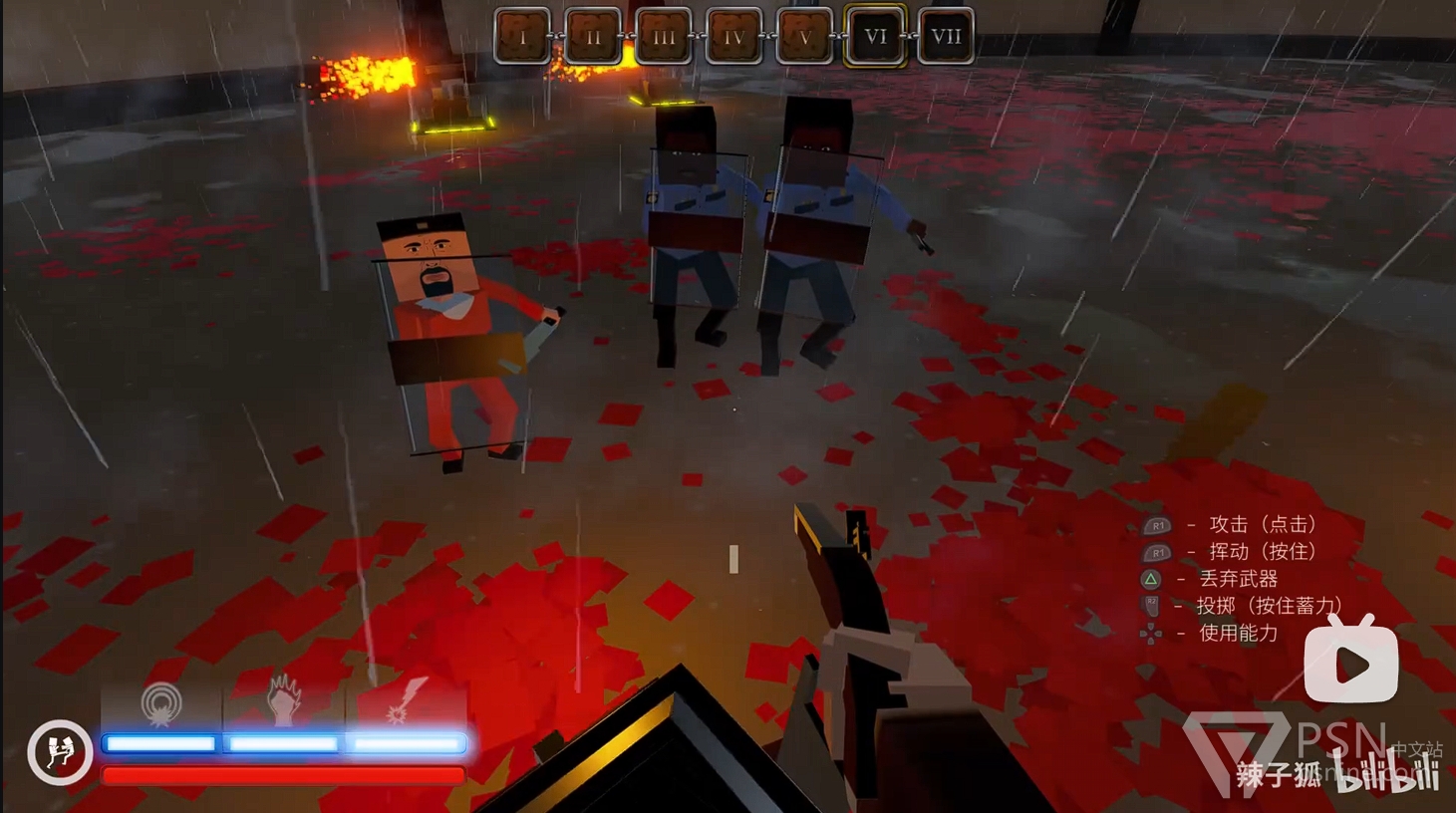 ·第三关:开局会遇到黑帮成员,场地上有喷火陷阱和尖刺竖桩陷阱,可以利用这些陷阱进行反击;当敌人死后掉落武器时,可以捡起并清理剩余敌人;