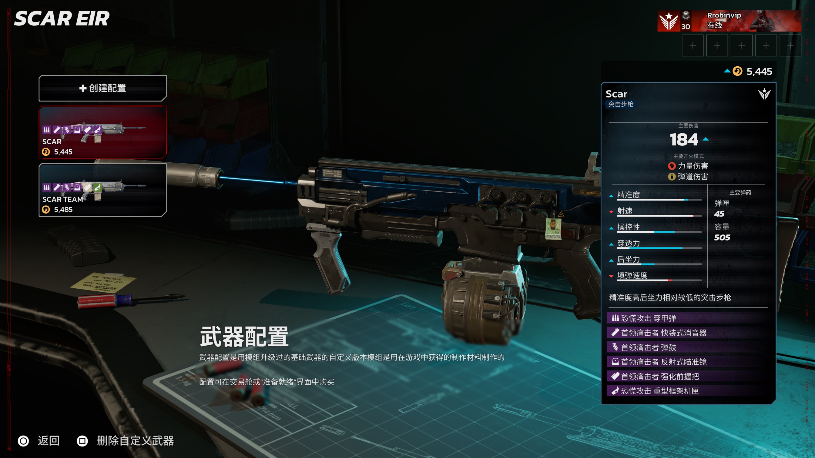 两把枪配装在下图,scar只有快装式消音器才有首领痛击词条。kv我练的比较晚,都没升满游戏就白了。告辞。