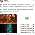 PS4版《Godfall》在台湾完成评级。4月下旬时PS4版《Godfall》已在欧洲完成评级。
