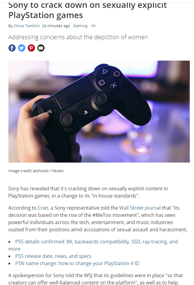 日本索尼公司已向华尔街日报透露,他们将开始严打ps4平台的所有游戏的sex内容,索尼称,他们已经通过了一项非常严格的新准则来判断登录ps4的游戏,索尼是一家注重声誉的公司,不能让不良内容影响青少年的健康成长