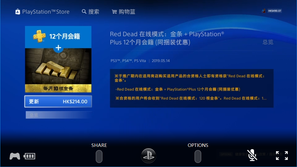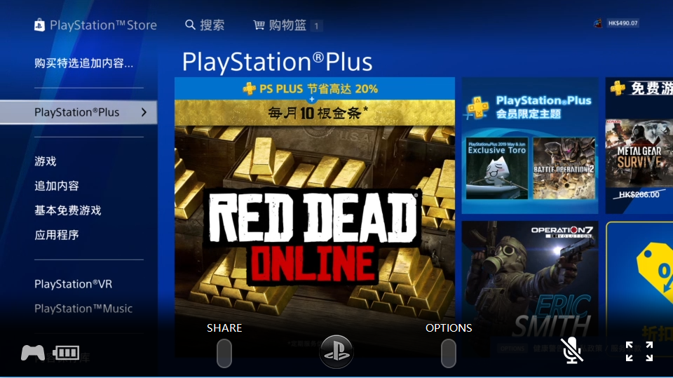 港服PSN年会员8折,从贴吧看到的,从主机打开商店能看到,每月+送《荒野大镖客OL》10根金条。
