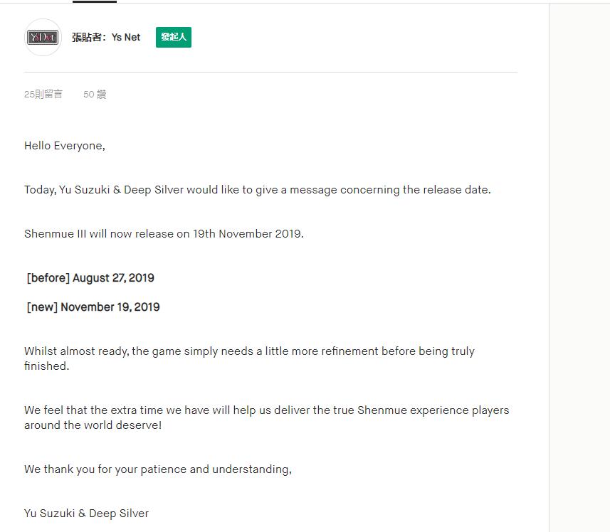 莎木3现在要和 小岛秀夫、星球大战、毁灭战士 同台竞技。