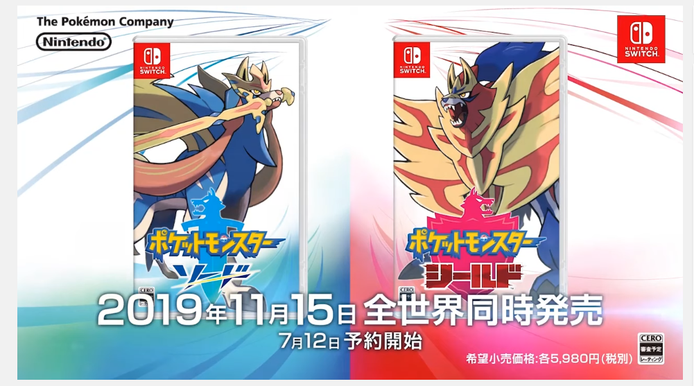 口袋剑盾发售日公布:2019年11月15日发售 7月12日可以预约日版。
