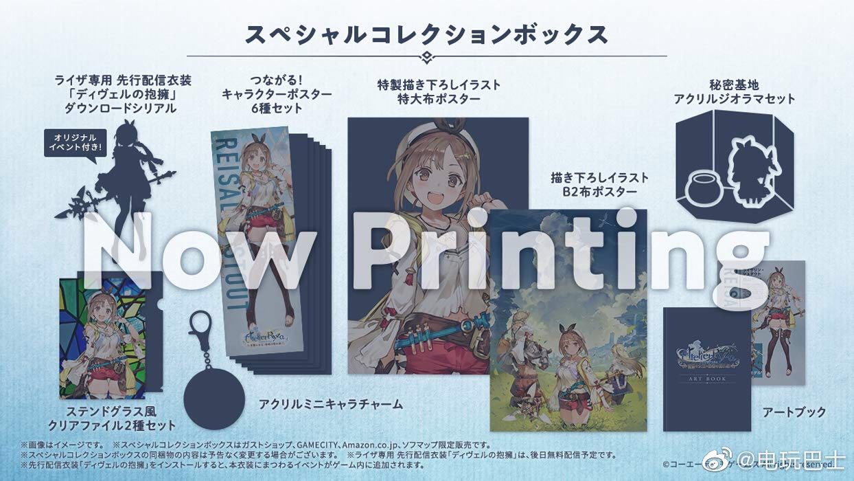 特别收藏BOX内容包括莱沙专用服装、6种角色海报、特制特大海报、B2布制挂画、秘密基地亚克力模型、文件夹2种、亚克力Q版角色挂件、设定集,售价21103日元。