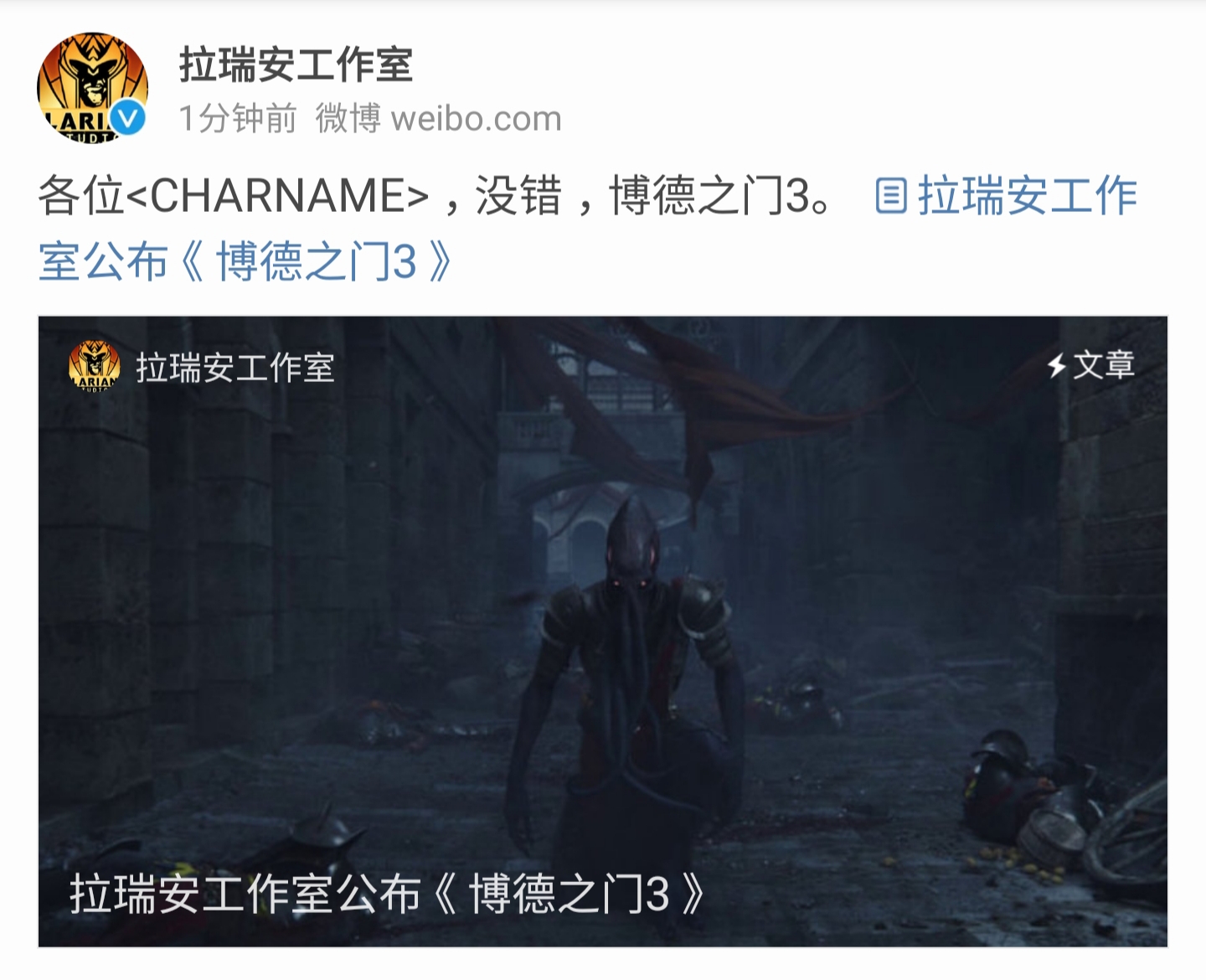 拉瑞安公布博德之门3