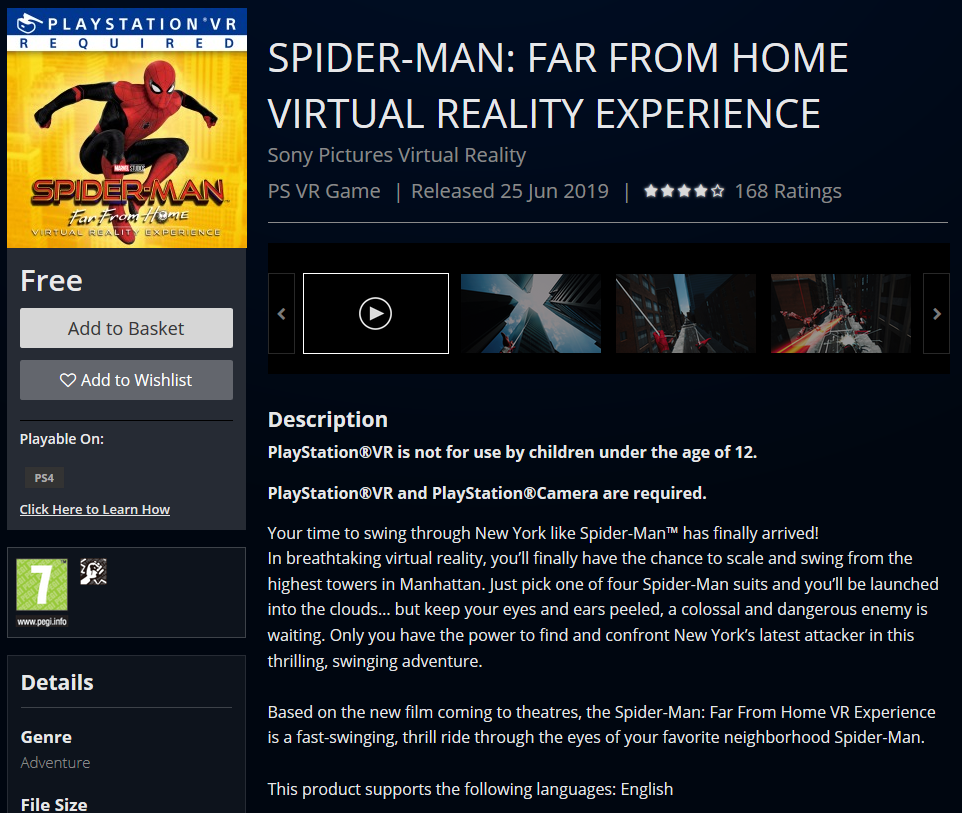 美服上架了一个为电影造势蜘蛛侠VR游戏,详见出处。