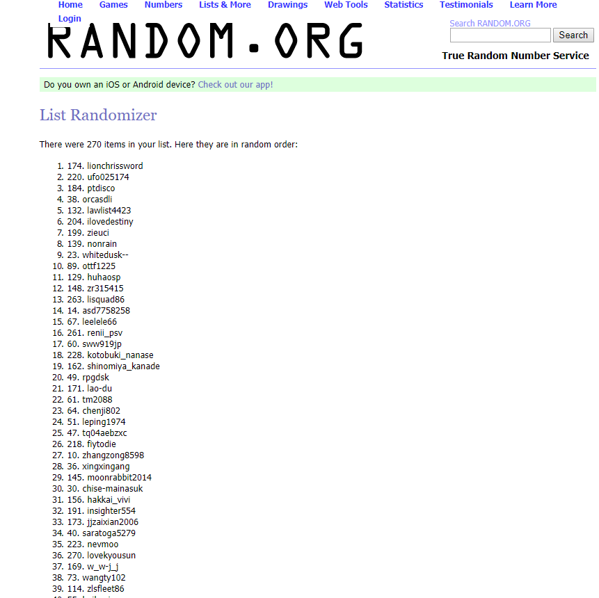 共有270个不同ID参加(点击大图查看)