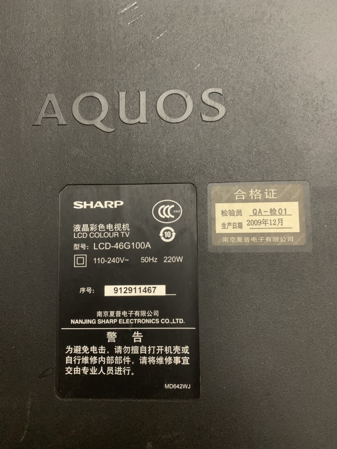 已经没有修理的价值了。 看着这电视机的出厂时间,才发觉家里面的其他设备也都有10年的服役时间了呢。。