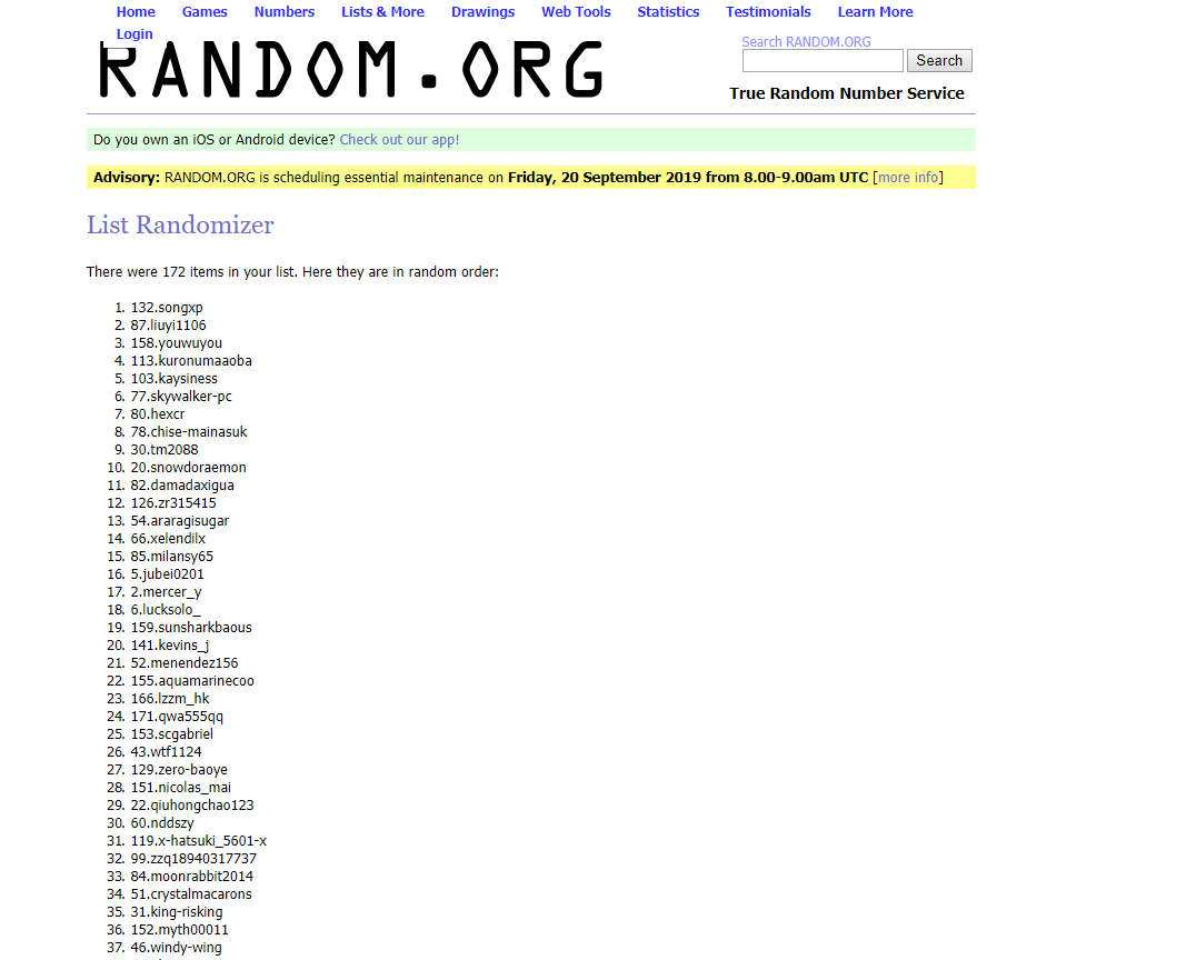 3. 抽奖方式:随机数抽取全部留言用户中的一位,如果该用户表明不感兴趣则重抽。