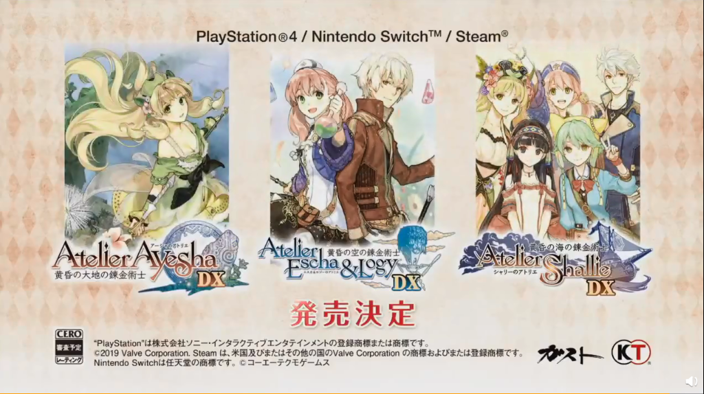 在今天的#TGS2019# 上光荣特库摩公开《工作室》黄昏系列三部曲DX版本:《亚莎的工作室DX》、《艾斯卡与罗吉的工作室DX》、《夏莉的工作室DX》,其中将收录大部分DLC内容,登陆PS4、Switch和PC平台。
