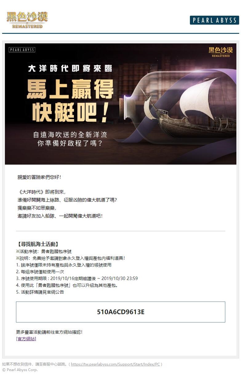 黑沙台服今天开大洋時代,送一个台服的勇者甦醒包序號,给有缘人