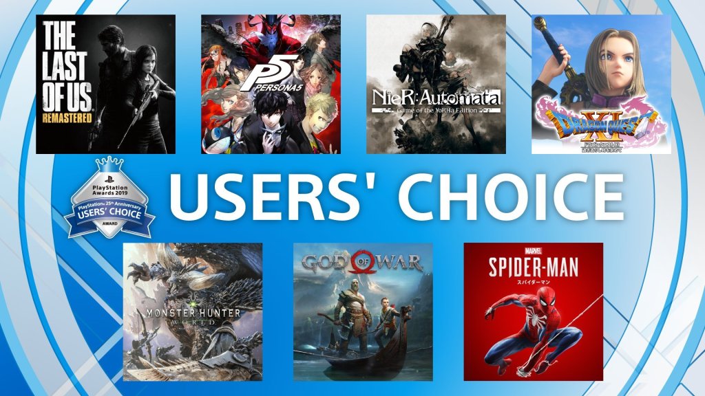 以往获奖作中选出的“25周年 玩家选择奖”为《最后生还者 高清版》《女神异闻录 5》《尼尔:自动人形》《勇者斗恶龙11》《怪物猎人:世界》《战神》《漫威蜘蛛侠》。
