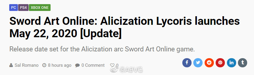 万代南梦宫拉美分部不小心提前公开了《刀剣神域 彼岸游境》的最新宣传片,并在其中公布游戏将于2020年5月22日发售,另外有消息称日版的发售日为5月21日。本作将登陆PS4、Xbox One、PC平台,并会推出中文版。