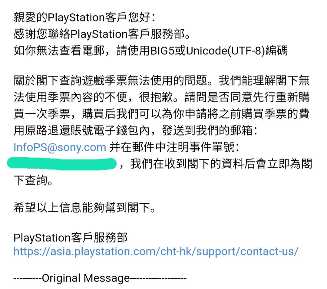结果:玩家通过电话和邮件向索尼反映问题,索尼要求玩家重买阉割版季票后再退款原季票钱至PSN余额。