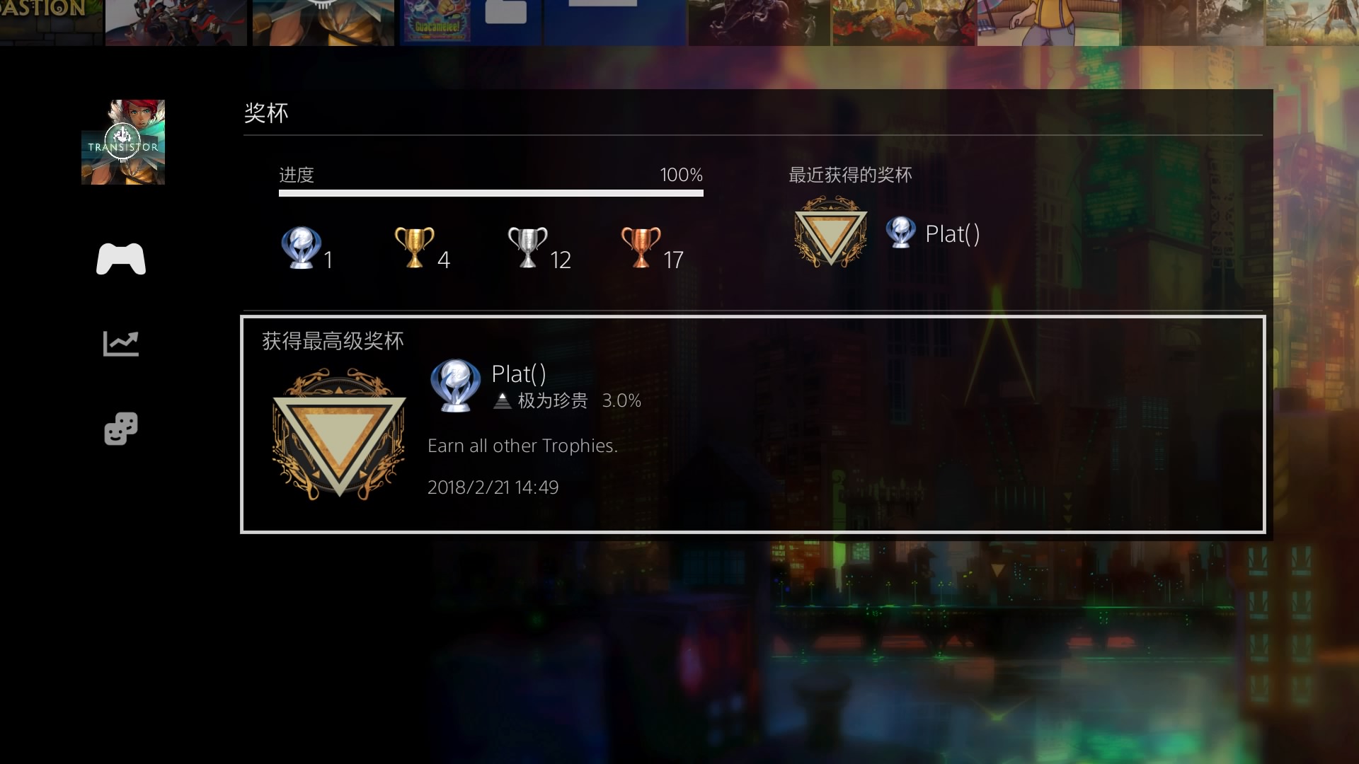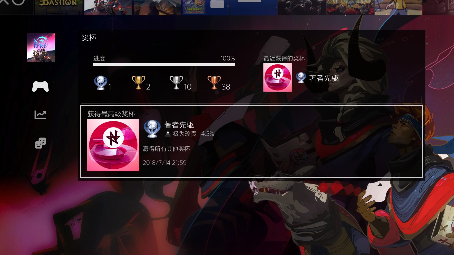 历时将近两年,终于把Supergiant目前在PS4上发行的三部游戏都给白金了,期待下半年的Hades正式版