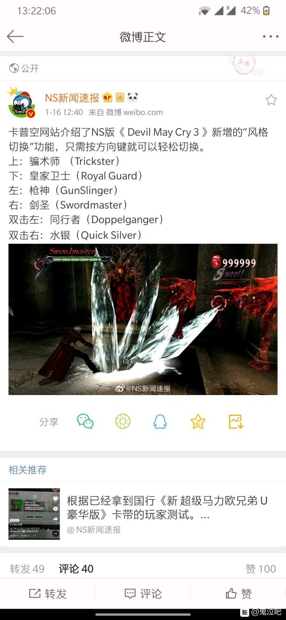 Switch平台的《鬼泣3 特别版》新增战斗中切换风格功能