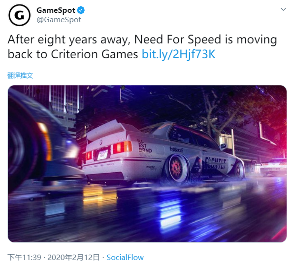 EA的极品飞车系列(NFS)游戏更换开发工作室, 由Ghost Games转为Criterion Games开发。