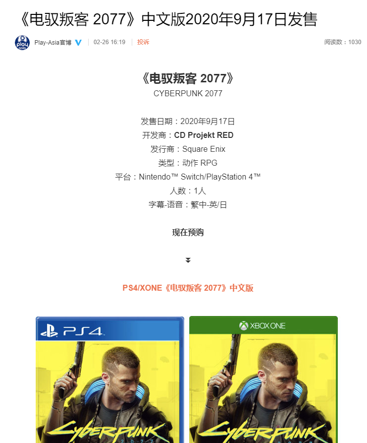 赛博朋克2077 TW代理SEGA HK代理Epic Soft 限定版有亚洲版但是外盒是欧版