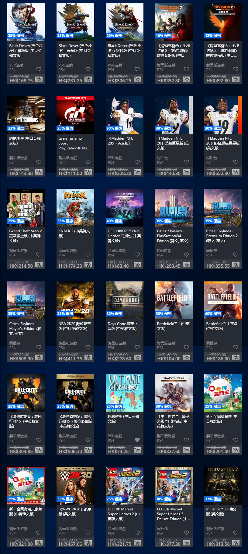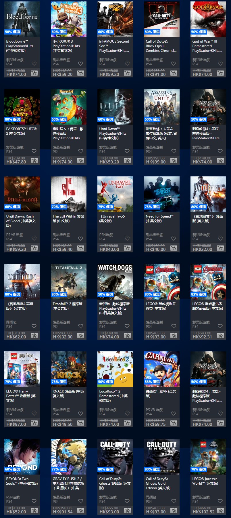 @zhangce1993 @yagami_yang 开了两折扣,一个是psn+双倍折扣(血源以上),一个是108HKD以下折扣(血源以下)
