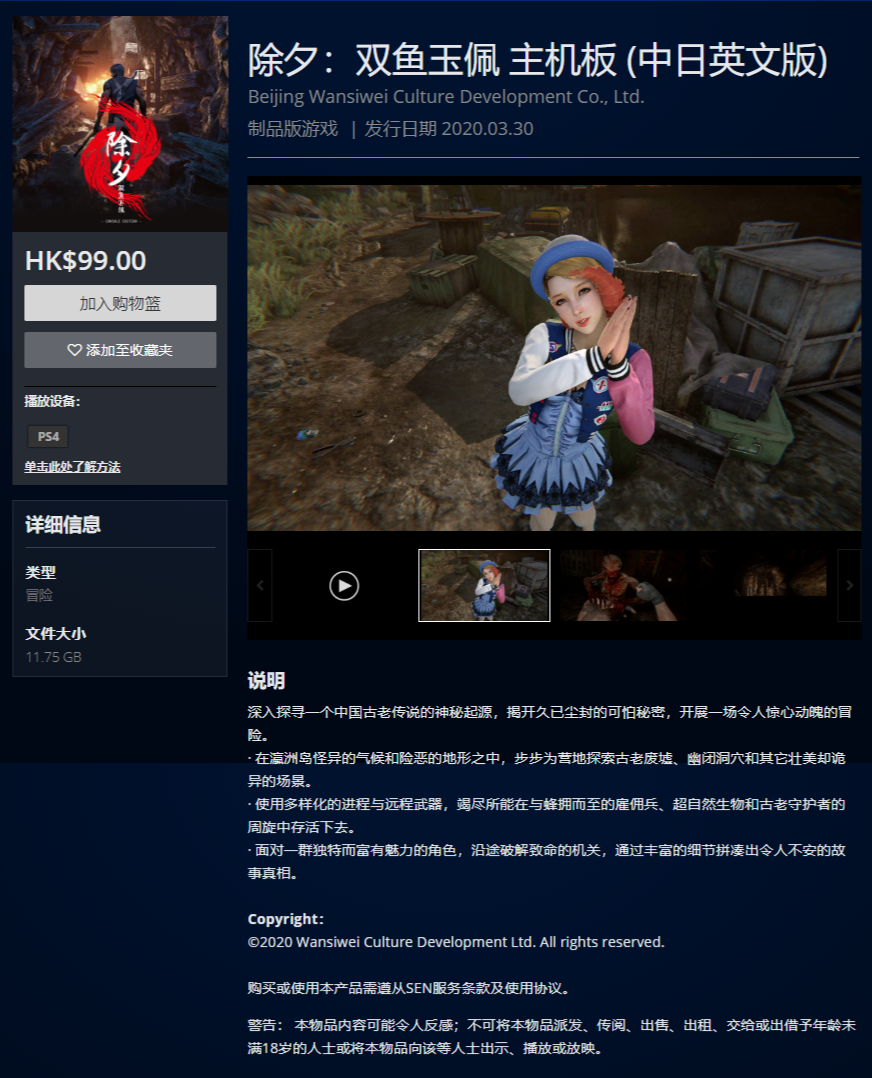 偶然逛PS Store发现港服今天上线了一个不需要PS VR的新版《除夕:双鱼玉佩》 另外港服临时工应该是换了新输入法了