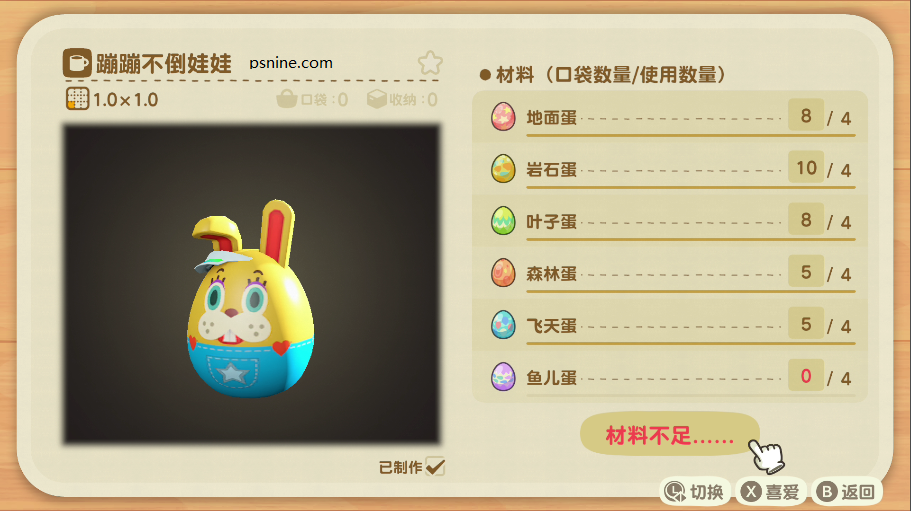 5.将所有家具做出来之后再跟兔子对话获得「蹦蹦不倒娃娃」图纸