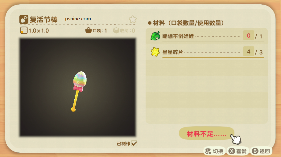 6.制作出来「蹦蹦不倒娃娃」之后学会图纸「复活节棒」,这也就是这次活动的最终物品了