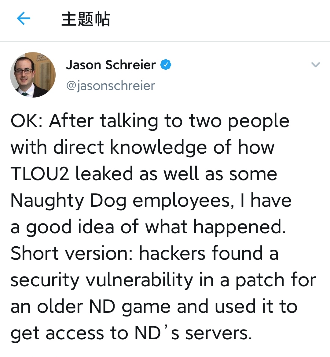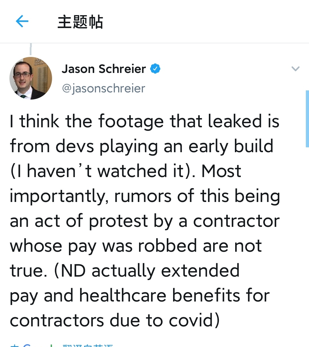 Jason Schreier在推上发表了新推文,大致总结一下就是: