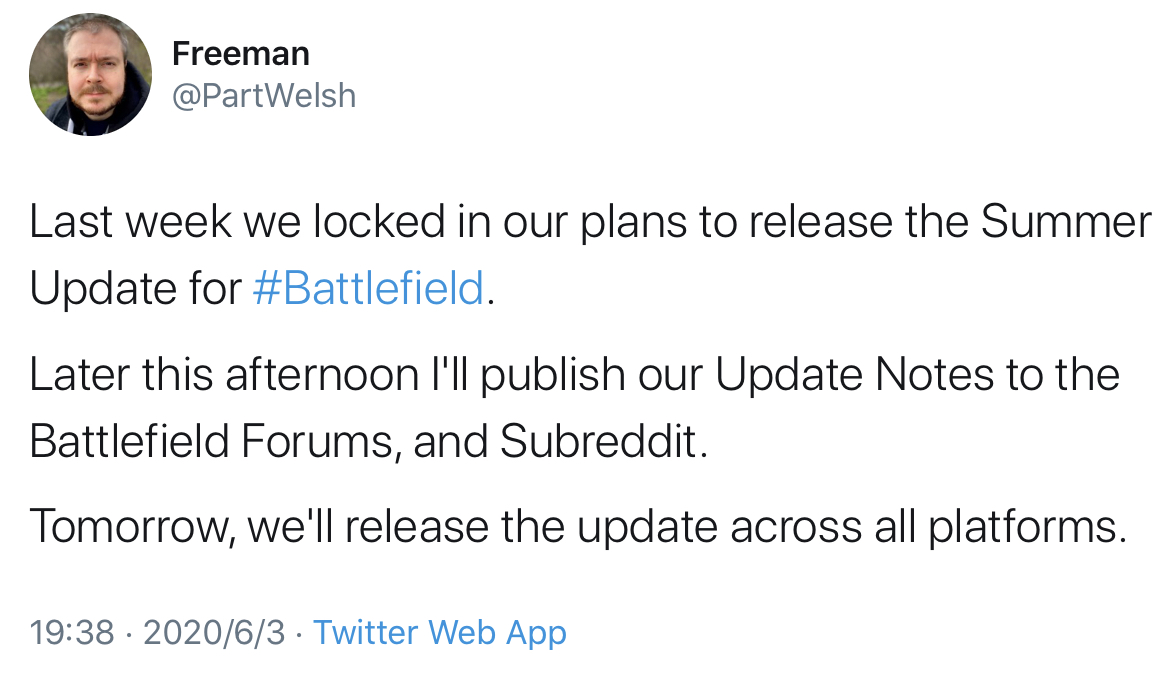 【战地风云5夏季更新通知】今天晚间DICE社区经理告知,工作室将于明天下午为全平台推送7.0更新,本次更新将会带来两张全新地图:Al Marj营地和普罗旺斯,超多全新武器,超多装备、手雷、载具和士兵阵营(最后一次内容更新,此后还会有维护更新),由于目前美国发生的一系列事件,官方不会在网站发布推广内容,也不会发布预告片。今天凌晨DICE社区经理在推特发布了本作将于今天下午更新带来的全新地图迈季尔营地和普罗旺斯重做版的64人征服模式布局,据其透露,迈季尔营地的征服模式将会出现4个和5个旗帜两种版本,具体还是等待玩家自行体验
