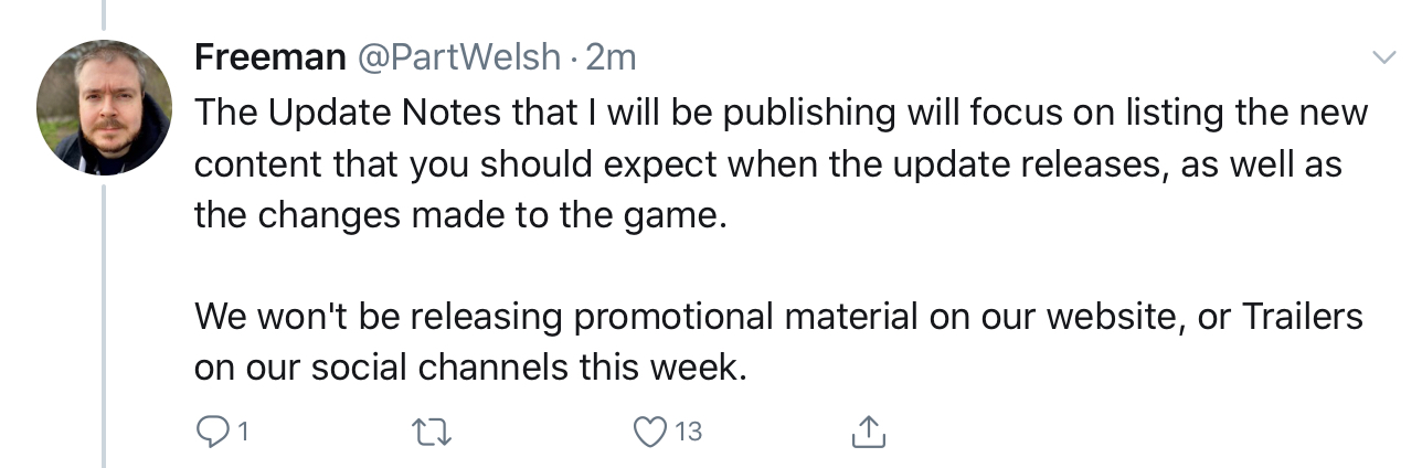 本次更新无维护时间,玩家更新完客户端即可进入游玩。各平台更新预估容量如下: Xbox:8.8GB PC:9.75GB PS4:9.0GB