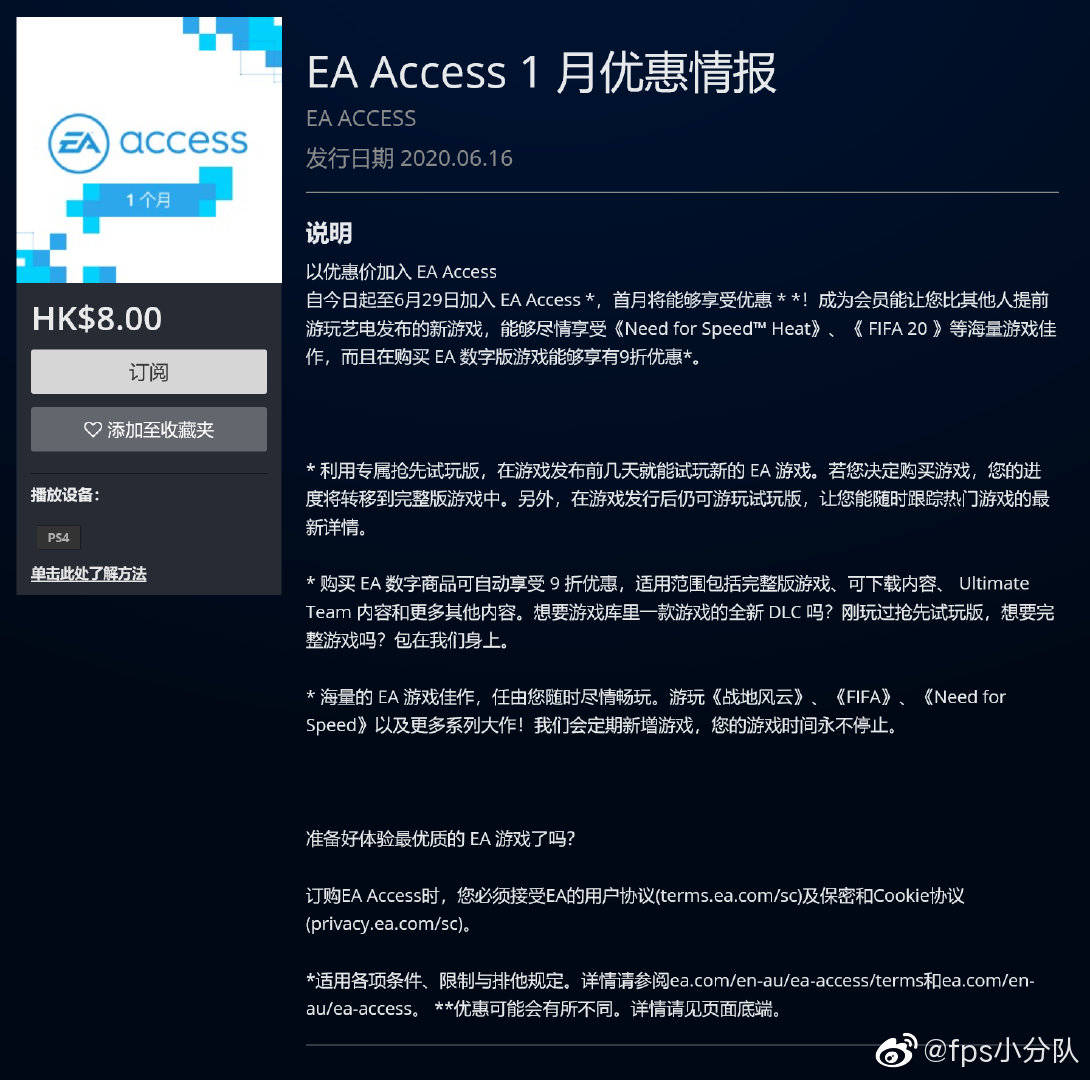 哦。查到了,顺便贴一下:https://www.ea.com/ea-access/games?isLocalized=true#playstation-4-only