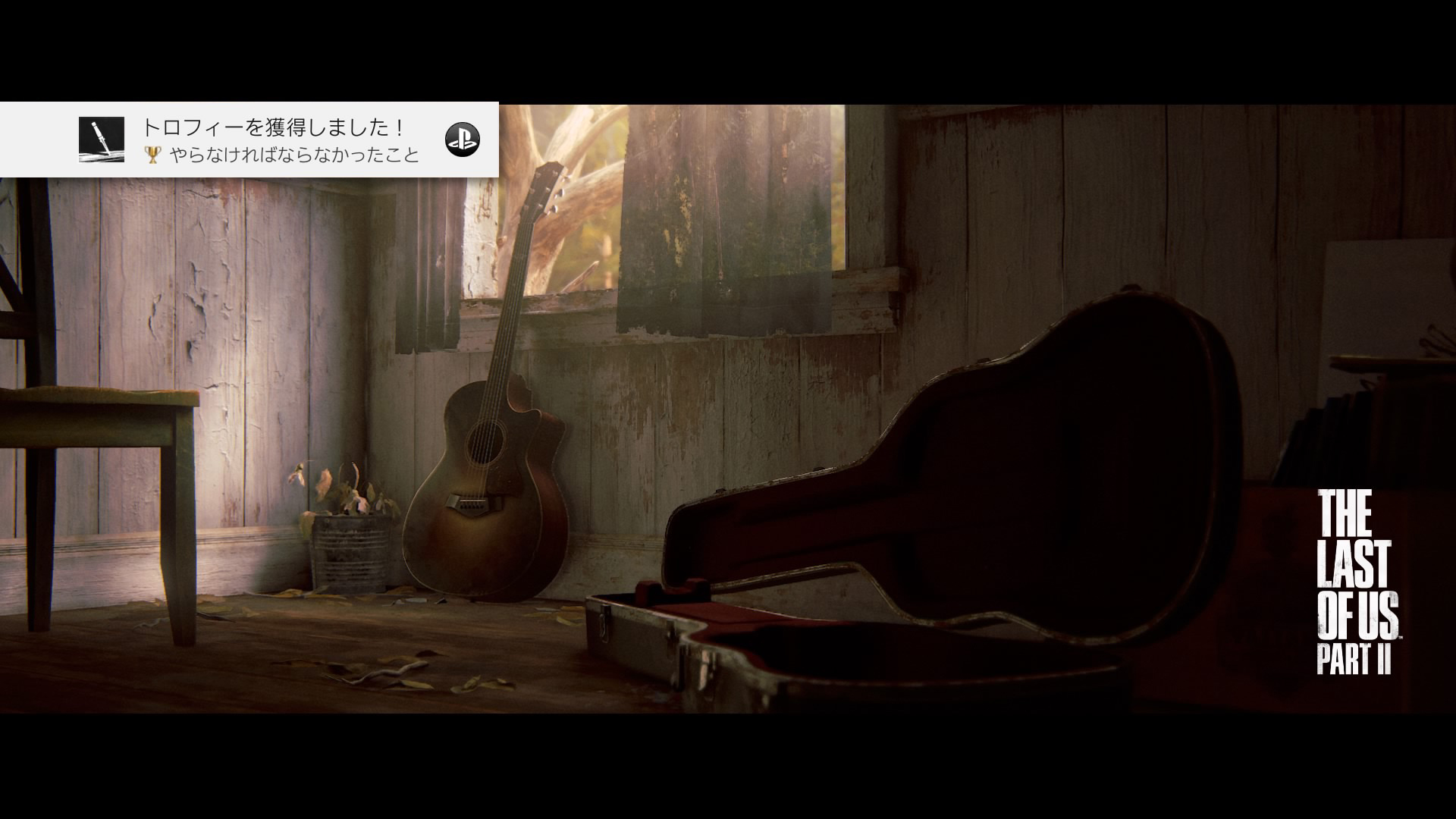 艾莉在看到艾比为了lev而决斗时,也就不难想到乔尔为了她杀了医生等人了,这时候放弃杀艾比,既是因为lev之前救她和dina一命,也是出于对乔尔“自私的爱”的回应吧。这时候的艾莉,才能够将一直随身携带的吉他放下,重新踏上未来的旅途。