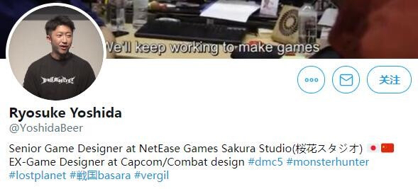 曾参与《鬼泣5》《怪物猎人》等游戏开发的前卡普空游戏设计师Ryosuke Yoshida从卡普空离职,将赴海外参与次世代项目开发,根据他推特个人简介来看,他的新岗位是网易樱花工作室的高级游戏设计师。
