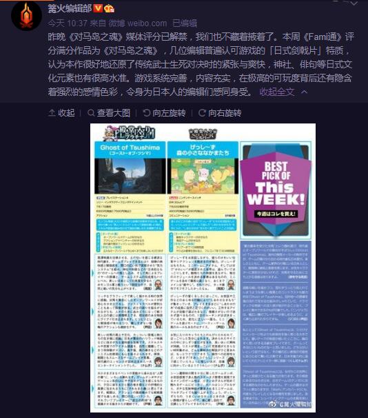 【本周FAMI通新作评分+《对马岛之魂》点评概要】