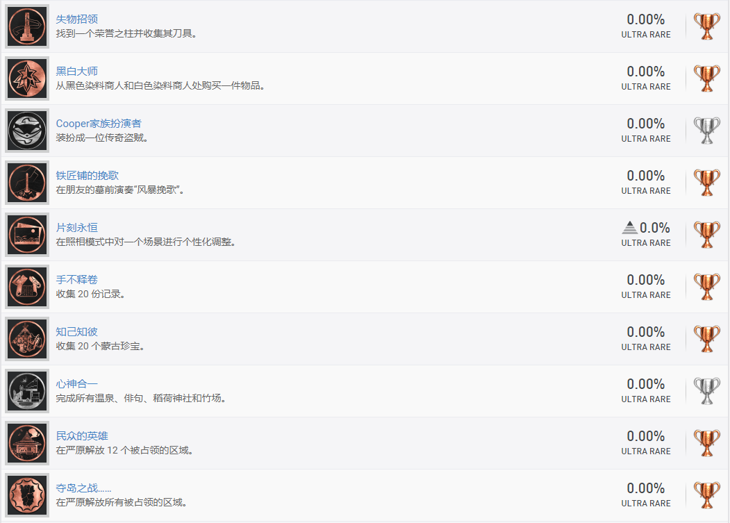 奖杯就是刺客信条+孤岛惊魂的套路。