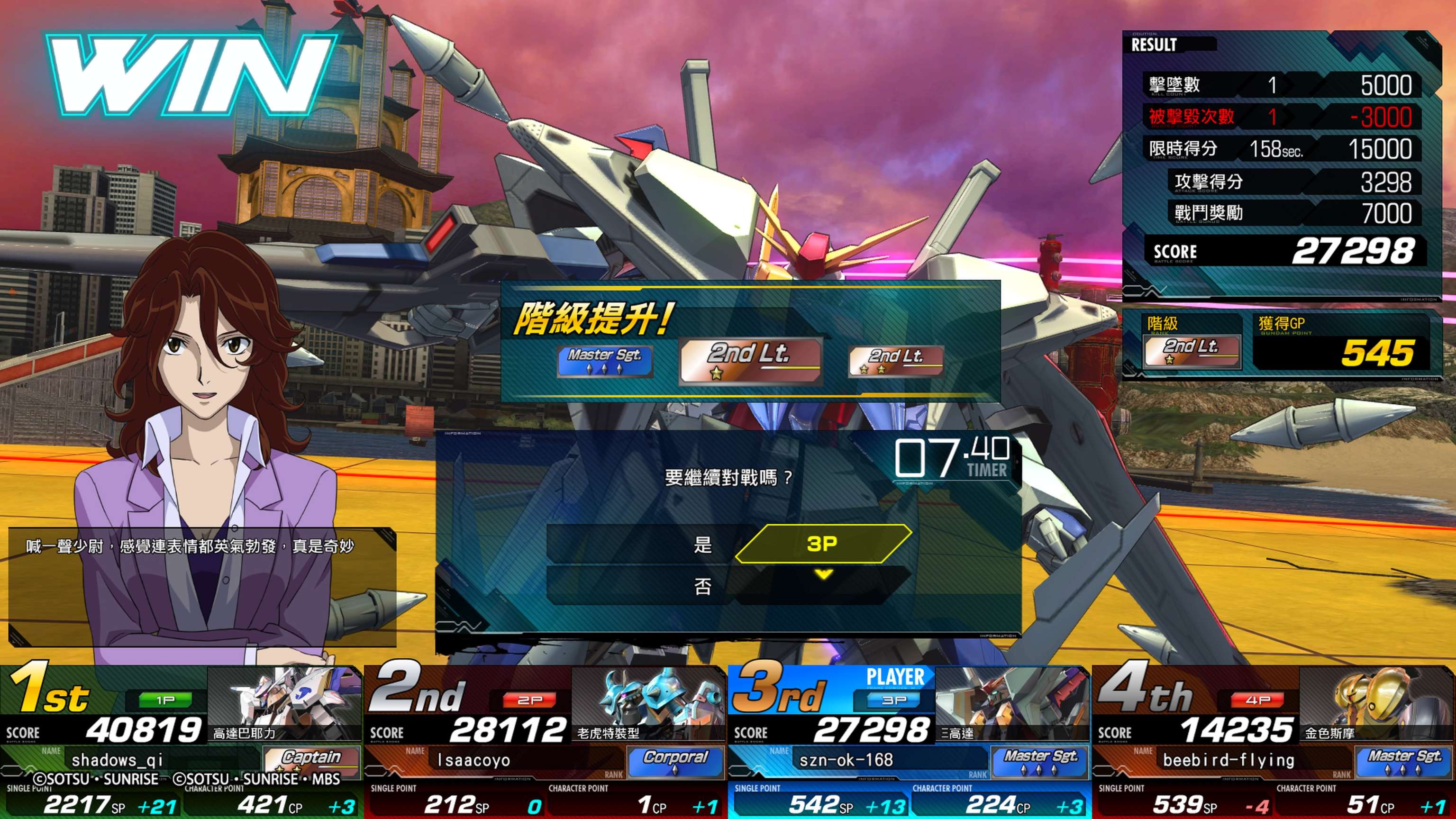 从0开始的萌新今天终于单排打到少尉了!打到曹长开始输了会扣分,压力也就来了。在曹长也徘徊了1、2天吧,甚至有连输掉回军曹的。一直用着柯西打,但是分数长期突破不了500大关。也有按战友、b站up主的推荐用露娜扎古上分,但是效果不好。每个武装都是足止,cd时间也长,机动性也不算好,会玩的耗下你武装拉近距离就gg了。而且我感觉后卫比前卫难玩好,前卫1落前保持好健康的血量,同时能给予到前卫支援,长期游走于红锁与绿锁之间,对萌新的要求我感觉是挺高的。不过如果你有个能1v2的好兄弟或者排上了这样的大佬,倒是能轻轻松松划水上大分。在港服单排也遇到形形色色的人:挂机的、打队友的(虽然我也有hhh)、自己打得不好还发《多亏你了》,结果打的分数还比你低不忘恶心恶心你的。