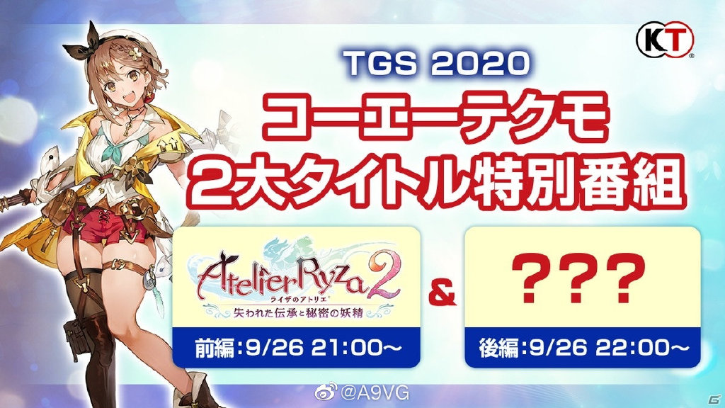 9月26日放送「2大作品特别节目」,其中一款为《莱莎的炼金工房2》,另一款为未发表新作。