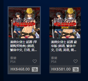 美俏女剑士,普通版468港币,豪华版581港币。买了普通版实体的玩家也可以单买豪华版升级包155港币,当然,豪华版所有DLC都可以单独购买。