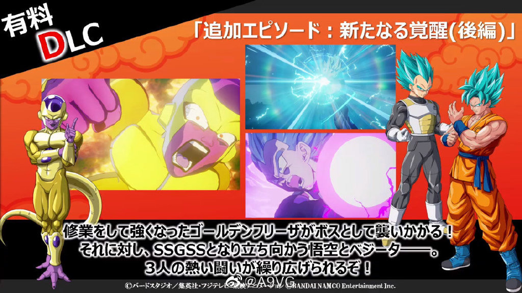 《七龙珠Z 卡卡洛特》DLC章节“全新力量觉醒”第二部最新情报公开,黄金弗利沙与复活的基纽特战队确认会作为这个DLC中的敌人出现,悟空与贝吉塔能够觉醒SSGSS(超蓝赛亚人)形态。另外官方还将通过免费更新追加新的卡片对战游戏,通过在游戏中的扭蛋机或完成任务都能获得新的卡片。
