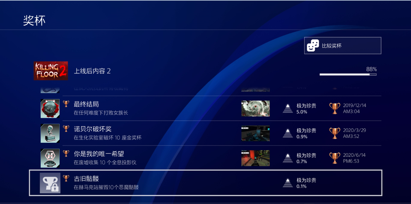 3年前刷的100%,现在看了下奖杯进度只有82%了