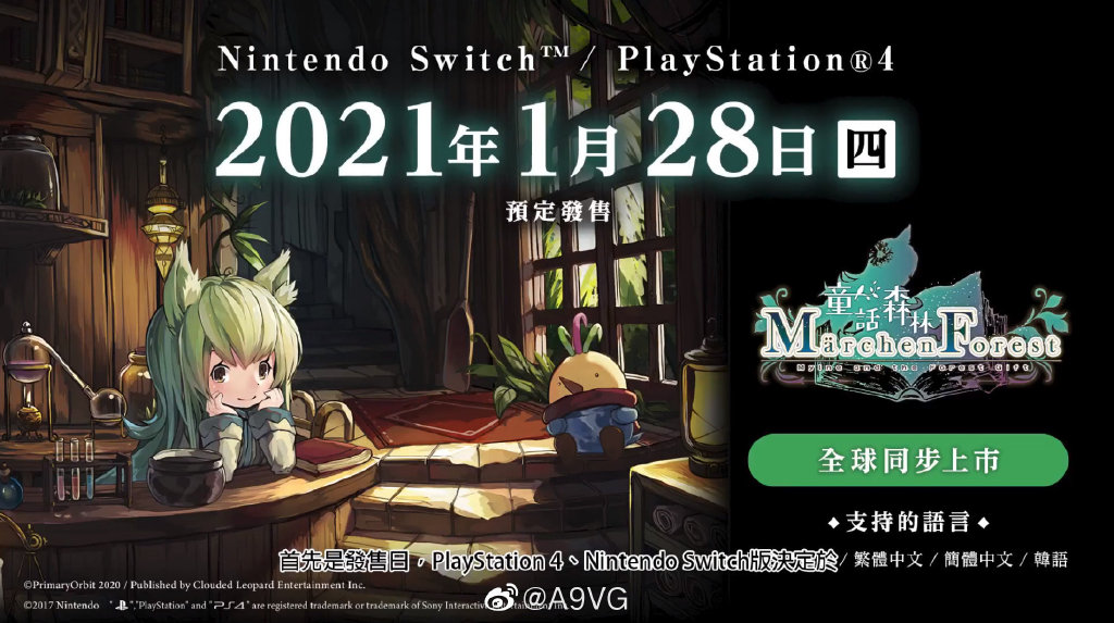 云豹娱乐宣布童话奇幻风格迷宫探索RPG《童话森林》将在2021年1月28日推出,平台为PS4、Switch、PC,支持简繁体中文。声优竹达彩奈为主角梅露配音并演唱了本作的开头歌曲。本作限定版将同捆主角梅露的模型,模型为限量生产。