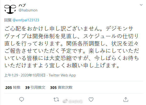 《数码宝贝 绝境求生》(PS4/Xbox One/Switch/PC)的制作人羽生和正日前回答粉丝提问时表示“近期会向大家报告情况”。本作最早定于2019年内发售,后由于改变开发体制延期到2020年,在今年上半年官方还曾表示“游戏以2020年发售为目标顺利开发中”。