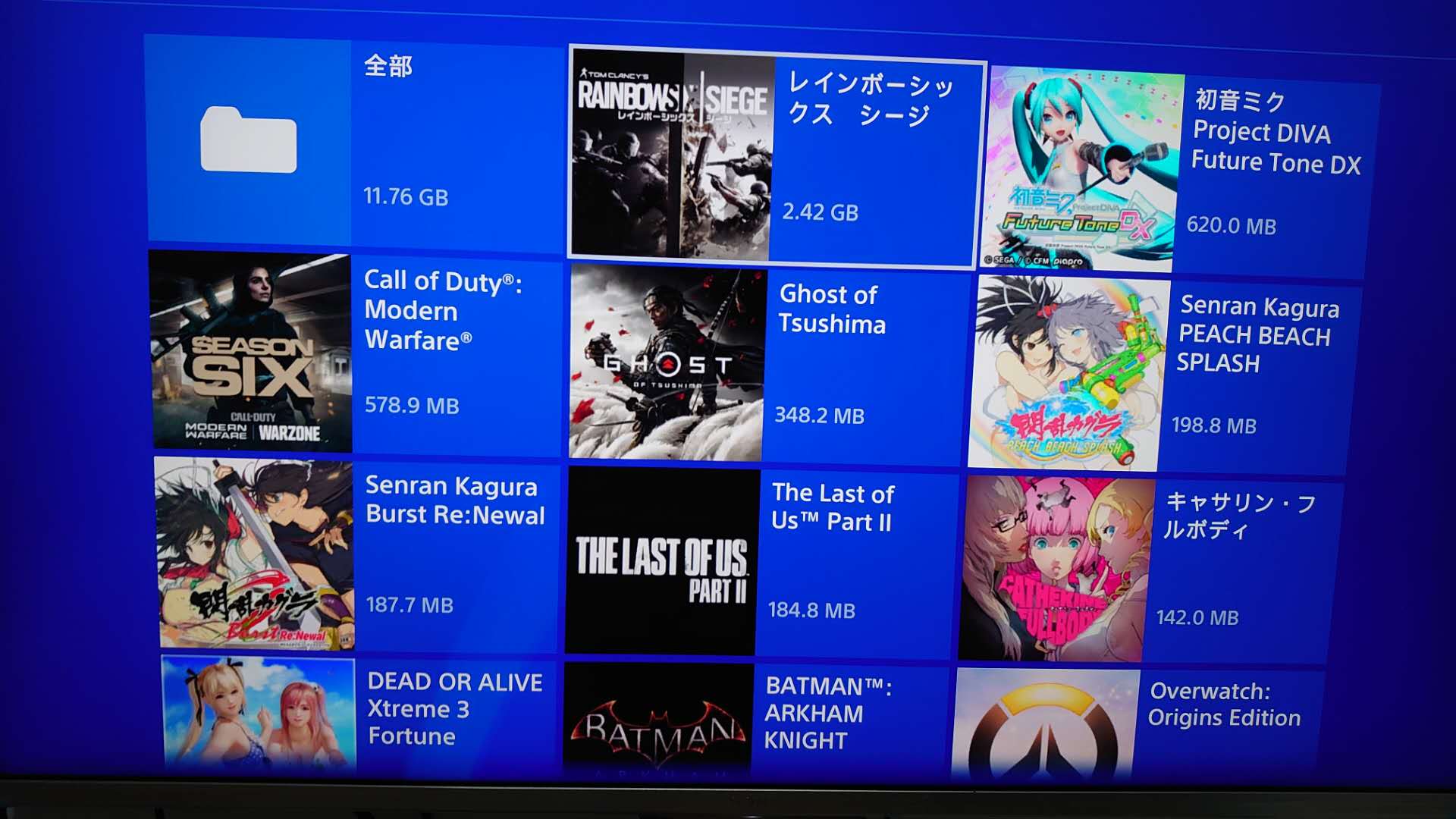 最大的R6截各种搞笑瞬间或者五杀视频 都是视频 所以比较大 图片最多的是初音 总共655张 然后是对马岛 神海遗产 奶排3 都是300+ 然后200+的又刺客起源 奥德赛 跳楼妹2 100+的就很多了 古早的初版PS4上的也就不去特意看了 然后什么比较好康的OP 桥段也会截下来 比如闪乱的OP 凯瑟琳的OP FF7云片哥女装跳舞等等