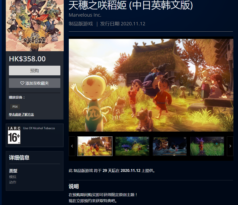 天穗之咲稻姬 (中日英韩文版)港服现已开放预购,11月12日解禁发售