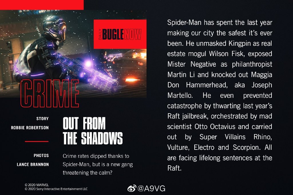 (图片)Insomniac Games以《号角日报》的形式回顾了玩家在《漫威蜘蛛侠》中战绩,并展示了《迈尔斯莫拉里斯》中的主要反派“修补匠”。